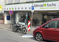 Ein neuer öffentlicher Fahrradparkplatz......ist direkt vor unserer Tür zu finden! Dank dem Einsatz der Stadtverwaltung und des Bauhofs Groß-Gerau konnte der Fahrradparkplatz noch im Winter mit Anlehnbügeln ausgestattet werden. Jetzt können alle Fahrradfahrer*innen von dem neuen Parkplatz-Angebot profitieren, auch wenn Sie abends beispielsweise ins Kino oder ins Restaurant gehen wollen. Dank der rot-weißen Bake kann man sein Rad von beiden Seiten sicher an einen Bügel anschließen. Und damit Sie beim Parken mal schnell die Reifen nachpumpen können, steht jetzt während unserer Öffnungszeiten ein Standkompressor für alle Ventil-Arten vor unserer Tür. | ![]() | | |